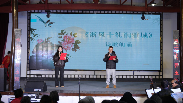 在“新风·文明礼赞”的篇章二活动中,专为雅城村创作的诗歌朗诵《浙风十礼润雅城》将“敬党爱国、亲邻互助、守信重诺”等“浙风十礼”核心内涵,与雅城村文明倡导相融合,以诗歌形式,让文明理念在平凡朴实的话语中传递;太公堂村选送的太极十三式《我的祖国》以刚柔相济、行云流水的演绎,展现出传统文化中蕴藏的和谐文明与家国情怀;“‘元旦书屋暖书香护苗行’新年雅趣知识竞答”环节则以版权保护、文明上网等生活化话题,吸引村民踊跃抢答,在寓教于乐的互动中进一步凝聚了护助青少年成长、共建清朗文化空间的广泛共识。